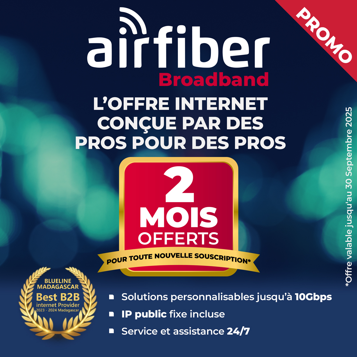 Connexion illimitée, solutions personnalisables jusqu'à 10Gbps, support dédié : Airfiber Broadband répond aux exigences réelles des professionnels. Vous travaillez sans interruption, nous assurons la fiabilité